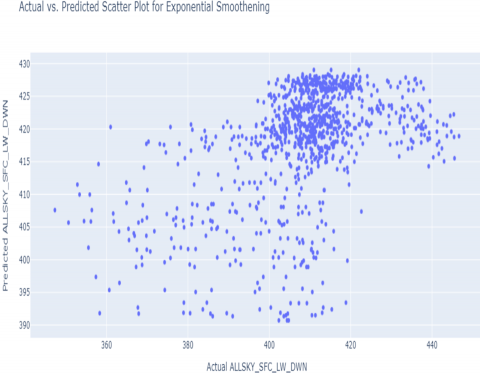Figure 4. Actual vs. Predicted Scatter Plot for exponential smoothening