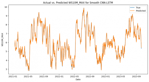 Figure 9. Actual vs. Predicted WS10M_MAX for exp Smooth CNN-LSTM