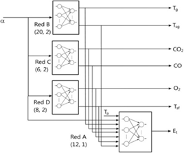 The quadratic errors of each neural network are shown in Table 6, it is observed that in network B at 80% is higher due to chaotic behavior of the gas temperature and the boiler surface temperature when working with an excess of air between 30% to 45% reflecting 4.27 an unusual behavior between the gas temperature and the thermal efficiency, which does not happen when working at 100%. The other quadratic errors of the networks have an acceptable behavior, but it is observed that in the 100% load, it was necessary to work with 8 points to improve the interpolations of the network, but with network A, a minimum quadratic error was achieved [20-23].