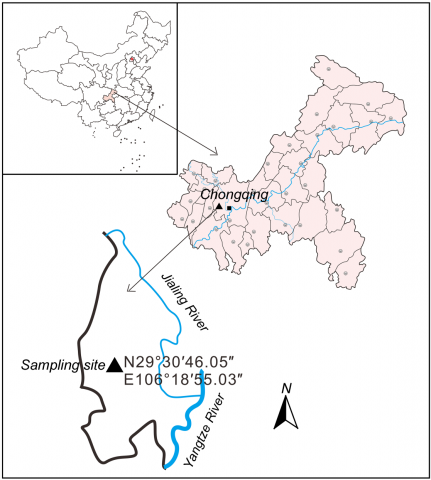 The experimental materials are typical mudstone sampled from the mudstone layers of the Suining Formation (lithostratic unit: J3s) located in Jinfeng District, Chongqing, Southwest China (29°30′46.05″N, 106°18′55.03″E). Chongqing is located where the Yangtze River and Jia-ling River meet [29]. Figure 1 shows the sampling site. The sampled region has a subtropical climate, with an annual average temperature of 18.4°C and rainfall of 1,151.5mm. Featuring warm climate, plenty rainfall and abundant sunshine, this region is extremely warm during the rainy season, resulting in strong and frequent dry-wet cycles under natural conditions.