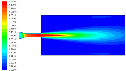 Figure 2. Water jet speed contour map at 13° (m/s)