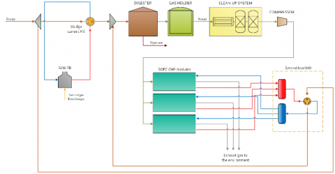 Figure 8. Concept of the ‘biowaste-to-energy’ plant in Torino (DEMOSOFC project: www.demosofc.eu)
