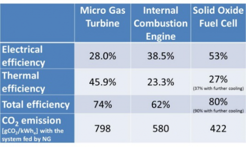Table 1. Energy efficiency of the Solid Oxide Fuel Cell compared to conventional power technologies