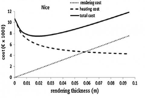 On the other hand, the price of insulation (manufacturing + installation) and often linear depending on the thickness. There is therefore an optimum thickness which minimizes the overall cost (material and energy).