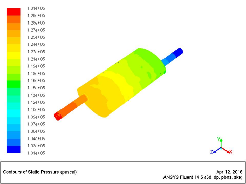 Figure 5. Static pressure contour for non-perforated elliptical chamber muffler