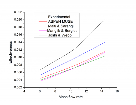 4.1 Effectiveness of plate-fin heat exchanger at different mass flow rate