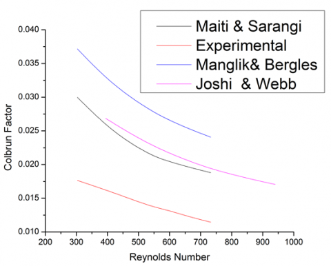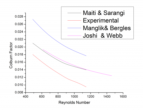 The plate-fin heat exchanger is first designed by using the available correlations in the open literature. In the present investigation, three significant correlations have been taken into consideration, such as Joshi and Webb [17], Manglik and Bergles [23], Gupta et al. [49]. The Coburn factor and friction factor are two important non-dimensional parameters to designate the performance of heat exchangers. The correlations of various models are presented in Tables 1, 2, and 3 respectively for Maiti and Sarangi [46], Manglik and Bergles [23], Joshi and Webb [17]. The equations have been solved in MATLAB environment.