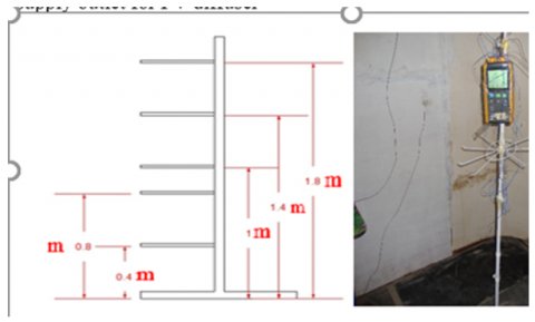 Results of practical were studied and a comparison was made between the first and second cases. It was studied practically based on the different positions and way of the occupants and based on the presence of ventilation devices where the distribution of heat and speed of air was studied on three columns divided within the area designated for human comfort for all spaces. Figure 9 shows the association of air temperature at the space height through pols (1,2,3). Where the change in temperature is evident during the occupied space. This temperature thinking strategy is the addition of a good way to brilliantly air level.