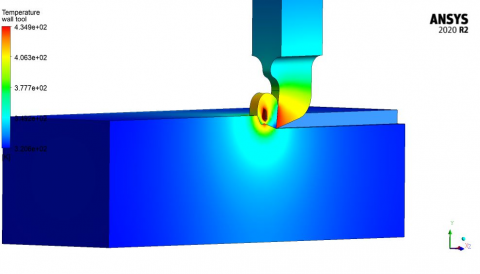 The ANSYS 2020 R2 program was utilize for modeling and simulation the cutting process in the present study to sub programs have been used to complete the simulation of metal machining first one is explicit dynamic, in this sub program simulate the movement of cutting tool with the depth of feeding and the velocity of cutting process. The FEM technique were used to establish the simulation of cutting process. The temperature generated in the cutting process are a result parameter which in term used to complete the temperature distribution in both workpeice and cutting tool by using the second sub program fluent. Finite element model was developed considering aluminum (Al) as workpeice material and HSS as a cutting tool material. Due to high and constant temperature of chip also it continues contact with cutting tool surface it can be consider a constant temperature body. In the cutting process the tool is move with the constant velocity and the workpeice is fixed as the cutting process is started both the workpeice and cutting tool temperature are increased. Thus for more accurate simulation a natural force convection have been considered in the modeling of case study. ANSYS Fluent which utilized the finite volume technique.
