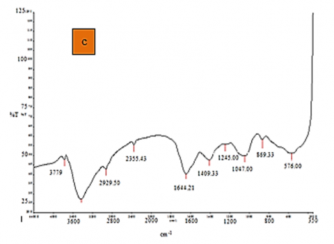 Figure 4. (a) EDS Micrograph of Rice Husk Ash; (b) EDS Micrograph of developed nanoparticles; (c) FTIR graph for developed nanoparticles