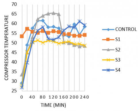 • The experimental results show an increase in the COP by up to 31, 23 and 35% in the 0.2wt%, 0.3wt% and 0.5wt% concentration respectively compared to the control sample after 240 minutes.