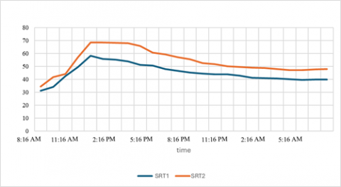 Temperature at the outlet of the receiver tube (℃) |