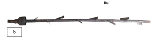 Figure 5. (a) Photographs of models Rt2, Rt3, and Rt4; (b) Photograph of the inner tube (Tu4) after adding fins to the outer surface