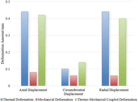 Figure 4. Comparison of deformation in GDI engine piston rings under thermal, mechanical, and thermo-mechanical coupled deformation