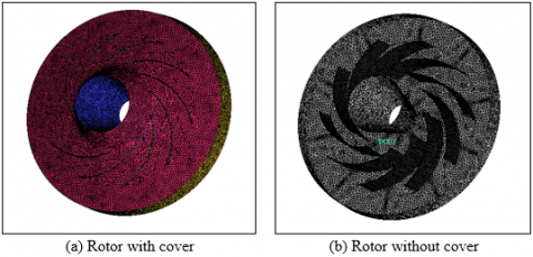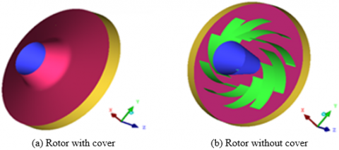The configuration of the rotor under study is with and without cover of a ventilator represented in Figure 1. The wall of the rotor is assumed to be not deformable and unfavorable to sliding. The simulation was carried out using a rotor with its cover. But for greater clarity of the simulation results, the cover was removed so that we could see the inside of the rotor.