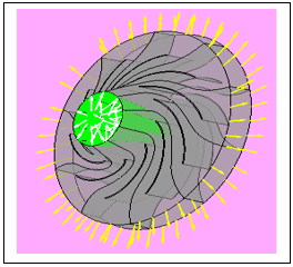 The geometry is reconstructed from the geometric information of the fan wheel and its characteristics which are summarized in Table 1 and Table 2. The creation of the geometry is done by software called ICEM. It allows you to create 3D geometry according to the model, directly to real scale from objects such as points, lines, surfaces and volumes.
