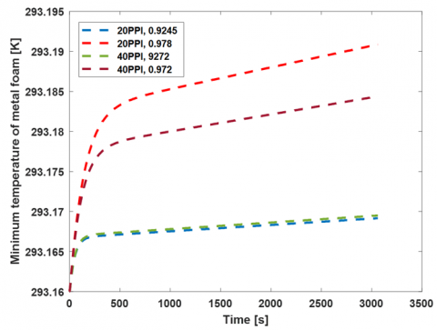 From Eq. (20), it can be expressed that, the thermal transfer of heat in the model is identical between the metal foams and the battery module which is expressed by Eq. (21).