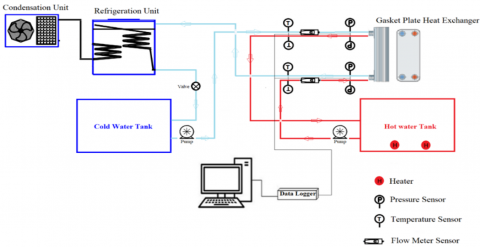 • Flow meter: Two flow meters are positioned at the inlet of both PHE sides to calculate the flow rate.