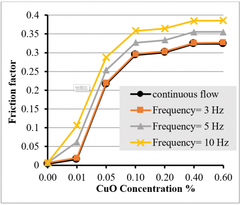 Figure 10. Validation test of the developed correlation for the flow of variable nanoparticle concentrations with 10 Hz oscillation