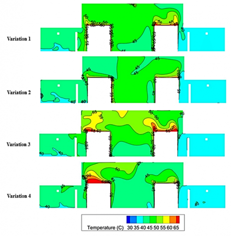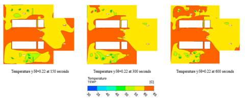 The study validated the simulation results by comparing them with experimental data and reference literature to ensure the reliability of the numerical model. The grid dependence test was conducted, confirming mesh independence, while the suitability of the turbulence model was evaluated by comparing the predicted and observed values across several performance metrics. Validation in this research included temperature measurements taken at various points in the engine room of a Landing Ship Tank class vessel, which were then compared to the simulation results. As shown in Table 3, the simulation results closely match the actual conditions in the ship's engine room.