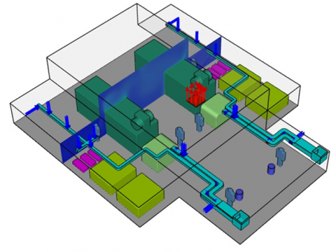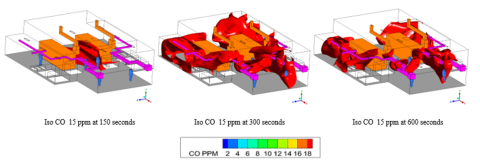 This study has simulated a basement fire using Autodesk CFD 2020 to test the effectiveness of exhaust fans at various flow rates (20,000 m³/h, 50,000 m³/h, and 100,000 m³/h). The results show that the exhaust fan volume of 100,000 m³/h is the most optimal because at 1200 seconds after the fire, the temperature below 1.4 meters remains below 65℃ with smoke visibility of around 10 meters. This condition supports evacuation and makes it easier for firefighters. Autodesk CFD has proven effective in verifying designs before field implementation [28]. This research has developed a modular COVID-19 testing center at Incheon Airport for rapid detection. The modular facility, designed with negative pressure, was selected for its speed and cost-effectiveness than conventional construction. An energy recovery ventilation (ERV) system and a CFD simulation-based design were applied to overcome energy and condensation challenges commonly found in standard facilities. As a result, the facility was completed in two weeks and met international pressure and ventilation standards [29].