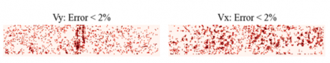 Figure 5. Relative error map (< 2%) for the velocity components vx and vy