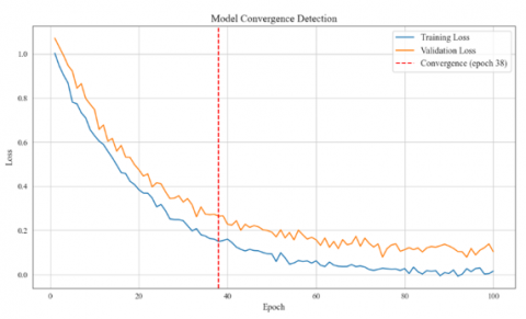 Figure 9 presents the CNN’s convergence behavior during training on approximately 1500 samples. Both training and validation losses decrease sharply in the initial phase, demonstrating rapid learning of meaningful flow patterns. Subsequently, losses stabilize near zero, indicating that the network attains a stable and precise internal representation. The close alignment of training and validation losses beyond the convergence point confirms the model’s robust generalization to unseen data.