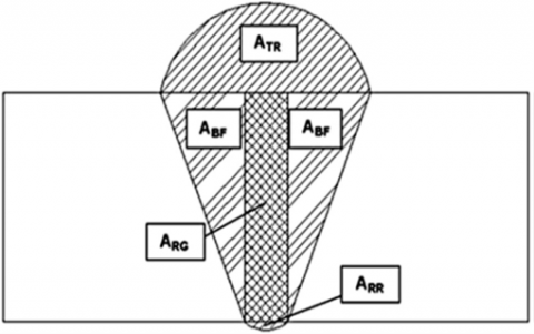 Using the geometrical features of the weld joints and the dilution percentage (DL%) between the electrode and the base metals used in welded samples were assessed, as seen schematically in Figure 2. Areas of weld reinforcement (ATR), root reinforcement (ARR), base metal fusion (ABF), and root gap (ARG) are some of these features. The percentages of AWD, ABF, and DL were obtained using the following formulae [21]: