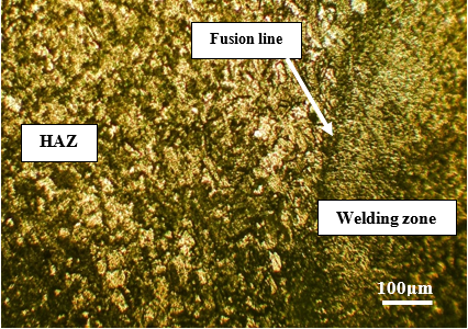 Figure 5. Welding fusion line, HAZ, and welding zone