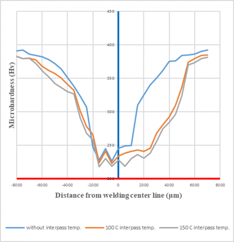 A. Results shown by the study that interpass temperature is a major factor controlling the amount of δ-ferrite within the fusion zone. Interpass temperatures up to 150℃ caused a reduction in δ-ferrite because cooler transformations encouraged the formation of more austenite.