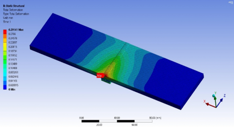 During the thermal analysis, the mechanical analysis takes into account the temperature histories of the nodes in the finite element mesh and saves them. Structural analysis utilizes temperature histories as thermal loading to determine the residual stress field. Thermomechanical stresses and strains can be computed at every time increment. The thermal elastoplastic material model is based on the isotropic strain hardening rule and the Von Mises yield criteria. The mechanical study utilizes the same mesh as the thermal studies and incorporates the heat results obtained from the trainset. Welding stainless steel does not induce a solid-state phase change in either the base or weld metal. Hence, the overall rate of deformation can be represented as: