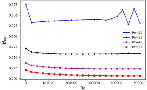 Figure 10. Average Nusselt number calculated on PV