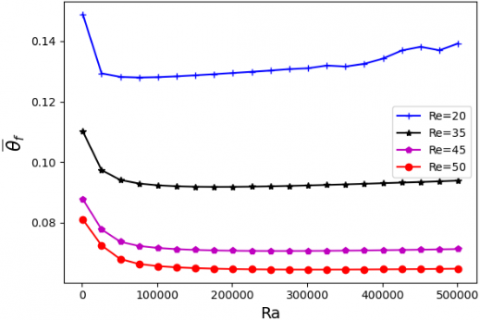 $\begin{gathered}\operatorname{Pr}=v / \alpha, \operatorname{Re}=\mathrm{V}_{\text {out}} \mathrm{L} / v , \operatorname{Pe}=\operatorname{Pr} \operatorname{Re}\text {and} \operatorname{Ra}=\mathrm{g} \beta \Phi_{\mathrm{i}} \mathrm{L}^4 / \lambda \alpha v\end{gathered}$