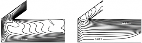 $\left\{\begin{array}{c}\left(\left(\overrightarrow{\mathrm{e}_{\mathrm{x}}} \cdot \vec{\nabla}\right) \theta\right)=0 \text { if } \mathrm{u}>0 \\ \quad \theta=0 \text { if } \mathrm{u} \leq 0\end{array}\right.$ at inlet, and