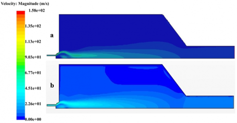 Figure 12. Comparison of velocity contours a) ANSYS Fluent, b) STAR-CCM+