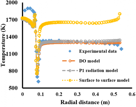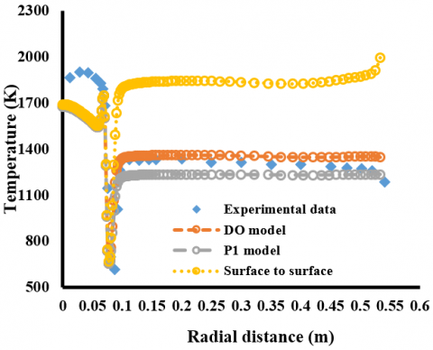 The walls of the furnace were cooled by cooling tubes. Hence, there is a heat loss from the walls. The measured temperature on different walls is tabulated in Table 2 and Figure 2(b) shows the temperature profile on the cylinder wall due to the cooling tubes.