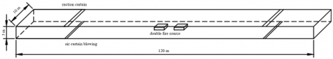 Extensive investigations have also been conducted on dual fire source scenarios, focusing on combustion characteristics, heat release rates, flame behavior, maximum ceiling temperatures, and temperature distributions in tunnels. He et al. [17] conducted reduced-scale tunnel fire experiments to study dual fire sources of varying sizes and spacings, revealing the attenuation pattern of ceiling smoke temperatures and the influence of adjacent fire sources on temperature changes. Guo et al. [18] conducted four full-scale fire experiments to investigate the characteristics of dual fire sources. By analyzing parameters such as heat release rate, vertical temperature distribution, and flame deflection angle, it was determined that variations in the spacing between fire sources and in the ventilation rate can alter the coupling state of the thermal feedback mechanism as well as the entrainment effect between the two fire sources. Case analyses have indicated that vehicle collisions, flame deflection under longitudinal ventilation, and the spread of high-temperature smoke can easily trigger dual fire source incidents in tunnels. Fires can escalate from an initial single-source event to a dual-source scenario, markedly increasing both scale and hazard [19-21]. The smoke spread and temperature distribution of dual fire source incidents are more complex than those of single fire source cases, posing greater challenges to evacuation safety. To date, limited research has addressed the performance of air curtains in dual fire source tunnel fires. By optimizing the operating parameters of supply-exhaust air curtains, smoke containment efficiency can be improved, energy consumption reduced, and safe evacuation ensured. Therefore, in this study, FDS was employed to investigate the smoke prevention and exhaust performance of supply-exhaust air curtains in highway tunnels under dual fire source conditions, thereby providing technical support for parameter selection in their design.