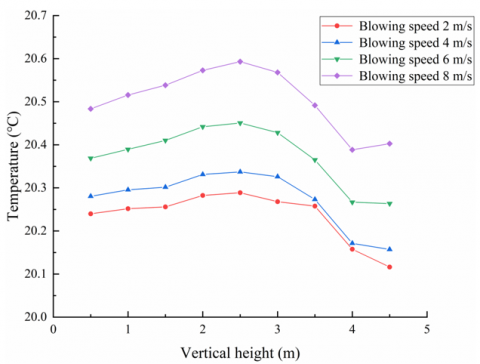 Figure 5. Vertical temperature distribution 5 m from the curtain on the protected side