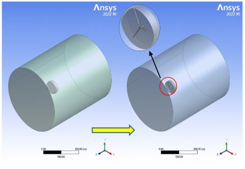 To simulate the relationship between the environment and wind turbine building, Boolean operation was used to define the computational domains for air. The features and details of these procedures, including the subtract operation that generates flow regions around the model shape, were compiled in Table 1.
