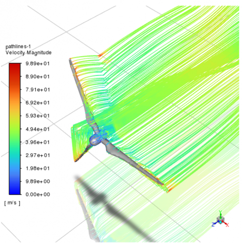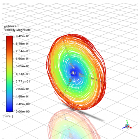 When the inlet wind speed was further increased to 90 m/s, the velocity of the airflow passing over the blade surface reached 143 m/s (Figure 7(c)). The streamlines were again observed to move extensively downstream, forming a longer and more developed wake. This behavior suggested that the kinetic energy imparted to the flow by the high inlet velocity and the blade’s rotation was significantly increased, resulting in a more pronounced aerodynamic response. The streamline elongation also indicated greater pressure differentials across the blade surface, which were typically associated with stronger lift generation—but also increased flow complexity and potential for unsteady aerodynamic phenomena.