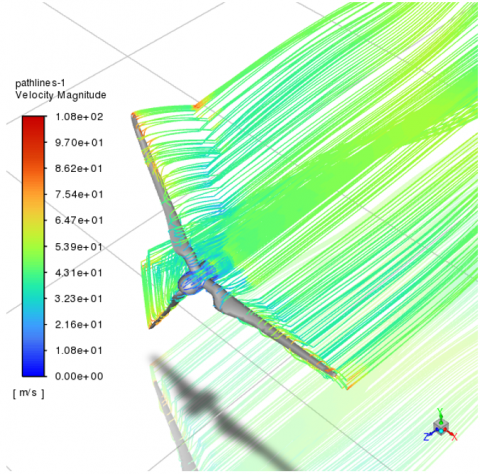 Boundary conditions were applied with an inlet air velocity of 50 m/s. At the outlet, reverse flow prevention was activated, and velocity was specified based on magnitude and normal direction relative to the boundary. The reference frame was maintained as absolute throughout the simulation.