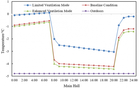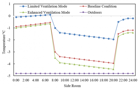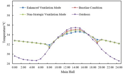 Table 1. Comparison of air temperature in different spaces under different ventilation speeds in the transitional season (Unit: ℃)