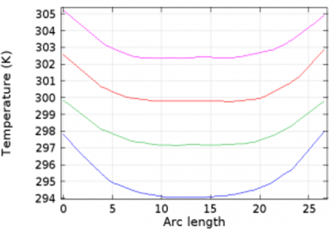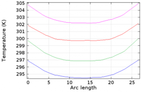 Water is utilized as the work fluid here. The water’s starting temperature is set to $T$ = 293.15.
