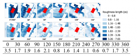 In urban environments, wind speed distributions are significantly affected by the presence and configuration of buildings, resulting in notable variations in wind velocities between inter-building spaces, urban canyons, and rooftop levels compared to those observed in open, unobstructed areas. [2]. Context-specific computational fluid dynamics (CFD) simulations can capture these effects, but their high computational requirements make them impractical for large-scale analyses [3, 4]. Instead, logarithmic wind-profile corrections adjust reference wind speeds at façade heights using two main aerodynamic parameters: displacement height (zd) and roughness length (z0).