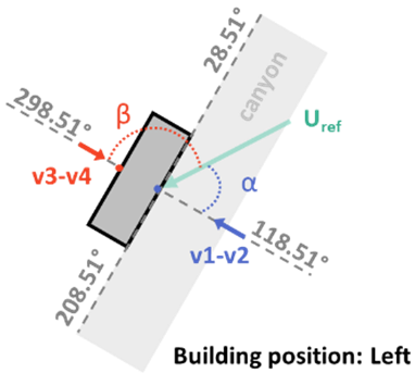 Uref,corr is the undisturbed wind speed corrected to account for the component perpendicular to the building façade [m/s], as illustrated previously in Figure 3.