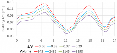 In many energy performance assessment simulations, building ACRs are assumed constant — sometimes based on construction period or archetype, which can lead to substantial errors in heating and cooling load predictions. To address this limitation, this study presents an urban-scale methodology that automates calculations of hourly, site-specific building ACRs by integrating urban scale wind-speed corrections into a three-zone CONTAM model.