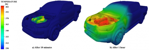 Figure 1. Thermal evolution of Hilux: a) 10 Minutes, b) 1 Hour