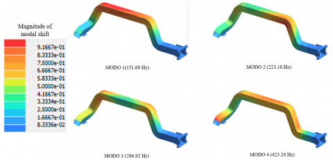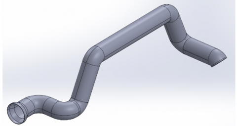 Two inverted “Z”-shaped designs (660 mm) were created with smooth transitions to reduce pressure losses and optimize unused space inside the vehicle (Figure 3).