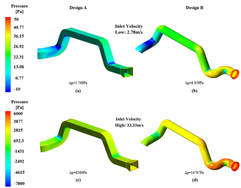 In the case of Design A, which features minimal directional changes, a square profile was selected to maximize airflow and efficiently utilize the available area.