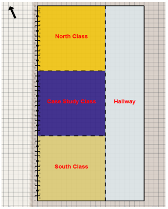 To enhance the model’s representativeness and reflect the real boundary conditions, the two adjacent classrooms—located respectively to the north and south—as well as the corridor, were also modeled. The spatial configuration is illustrated in Figure 1.